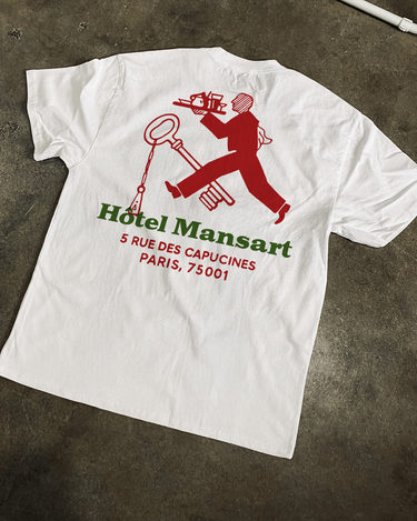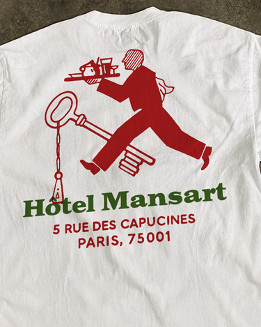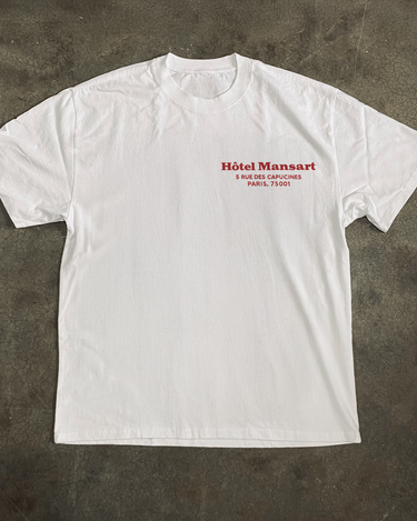 DOPE RETRO 'HOTEL MANSART' PARIS HOTEL FADED HEAVY WHITE TEE