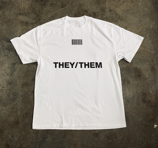THEY/THEM FADED HEAVY BARCODE TEE WHITE
