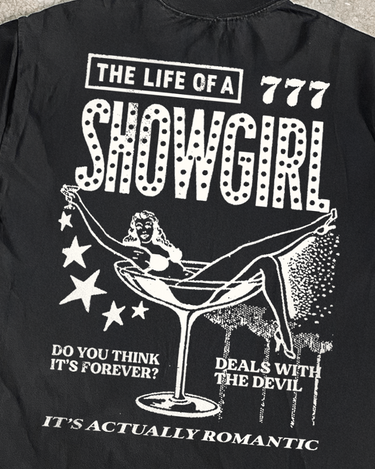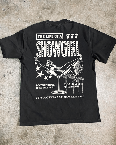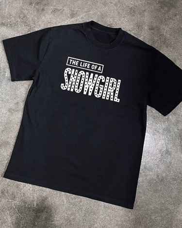 VEGAS SWIFT 'LIFE OF A SHOWGIRL' BLACK HEAVY FADED TEE