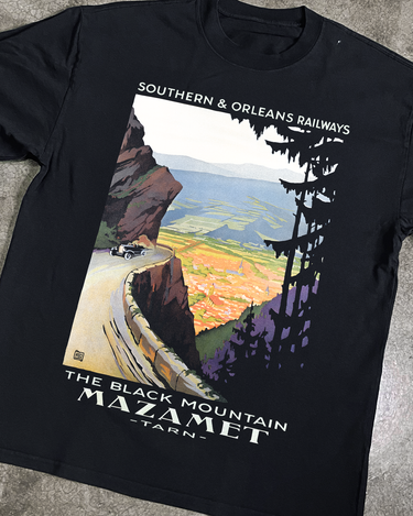1920's 'MAZAMET' FRENCH TOURISM POSTER FADED BLACK TEE